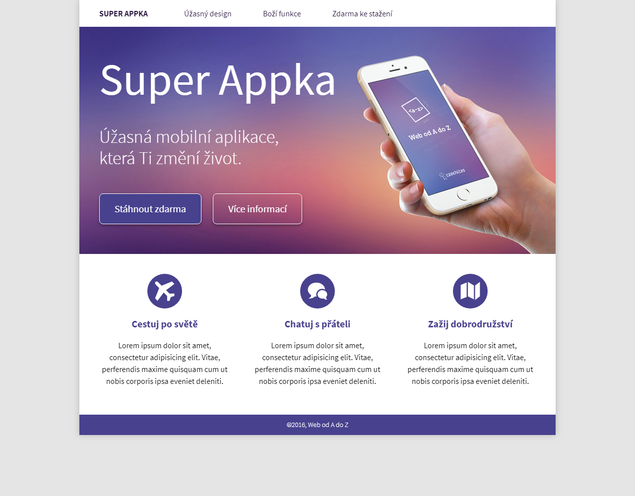 11.11.2019 #html #css #layout #flexbox Lekce 6 - Layout a responzivita Materiály Prezentace Videozáznam Domácí úkol Budeme vycházet z tohoto dokumentu, není tam toho o moc víc než potřebné obrázky Zadání od grafika vypadá takto, můžeme použít všechno co jsme se zatím naučili Hodně štěstí